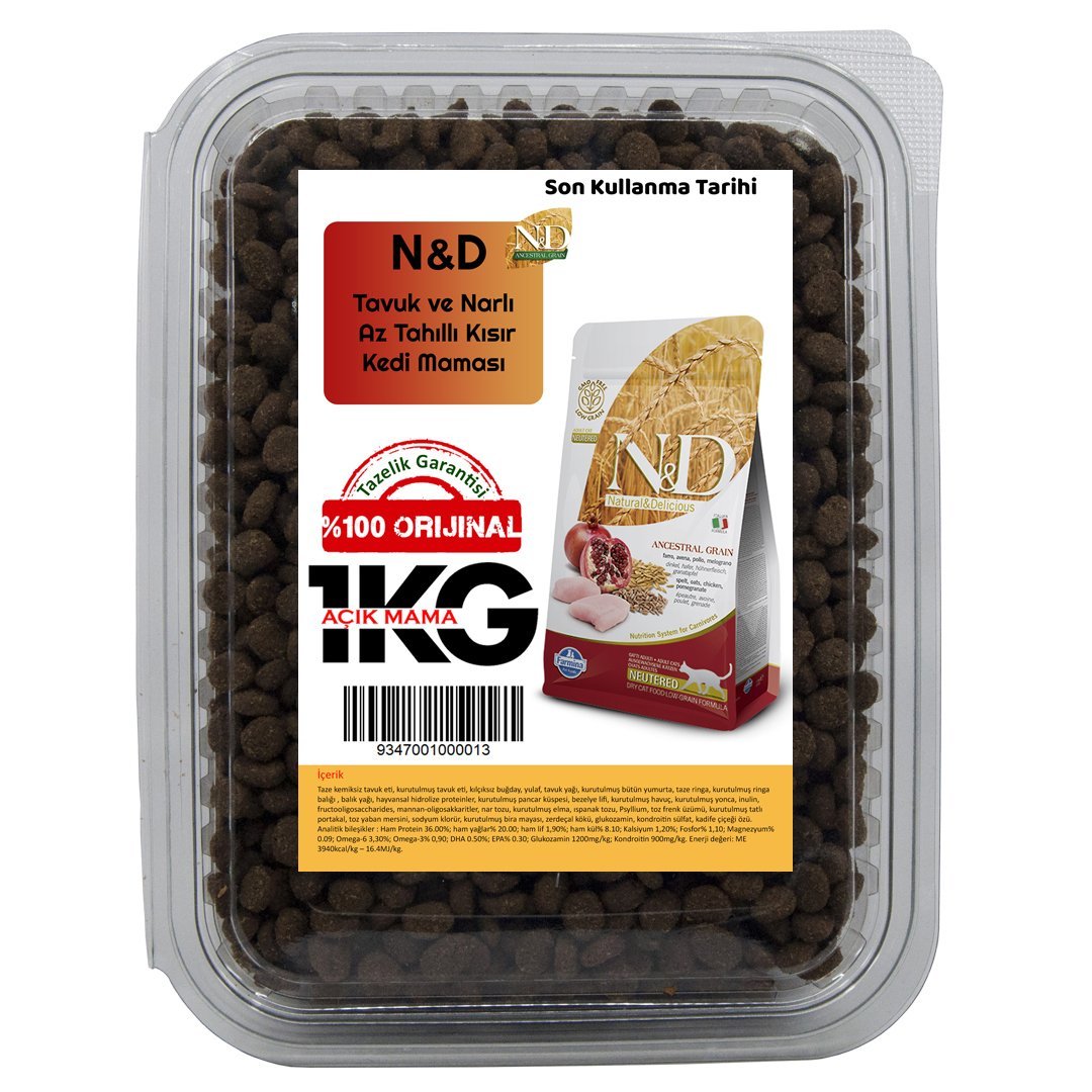 ND Düşük Tahıllı Tavuklu Kısırlaştırılmış Kedi Maması 1 KG